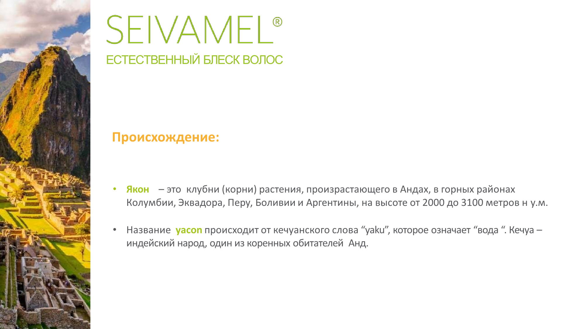 Seivamel Олигосахариды из корней Якона (Polymnia Sonchifolia) – натуральный актив для блеска и увлажнения волос